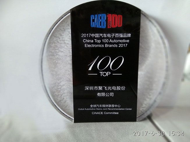 聚飛光電榮登2017中國(guó)汽車電子百?gòu)?qiáng)榜