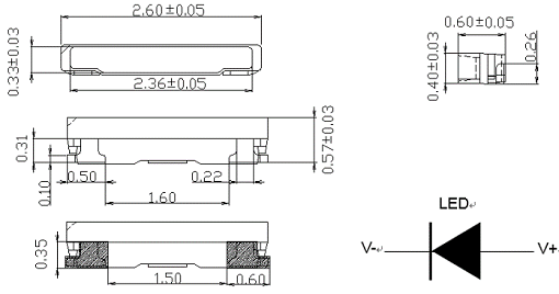 封裝尺寸:2.6*0.6*0.4mm
